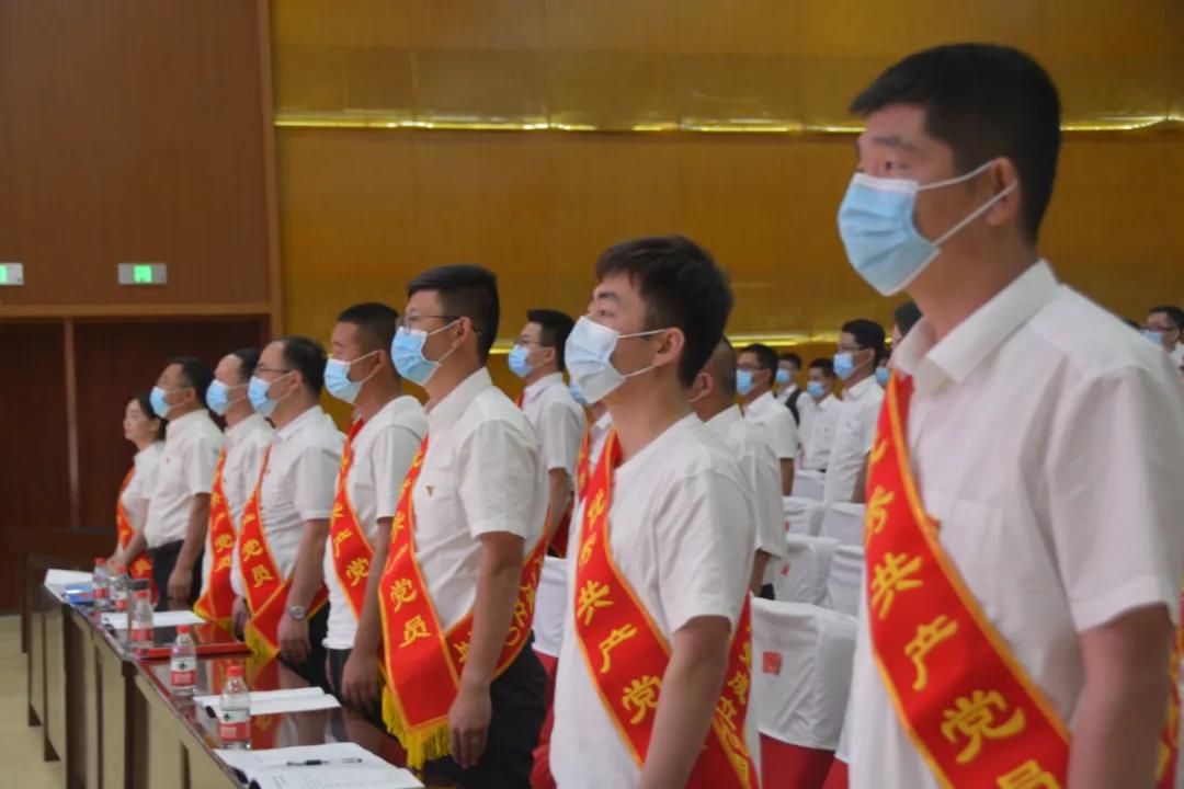 表彰會現(xiàn)場,新入黨黨員登臺,隧道公司黨委書記、董事長劉文太同志帶領(lǐng)新黨員開展入黨宣誓儀式,觀眾席全體共產(chǎn)黨員一同重溫入黨誓詞。