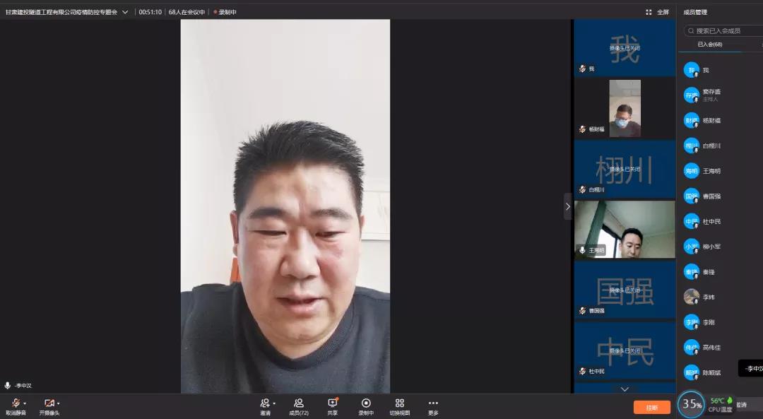 ”要壓實疫情防控主體責(zé)任。各單位、部門、項目部的主要負(fù)責(zé)人作為疫情防控第一責(zé)任人,務(wù)必嚴(yán)格按照公司疫情防控實施方案,扛起各自的責(zé)任,每日對所分管單位(部門)人員的疫情防控工作進(jìn)行監(jiān)督落實,特別是對有異常的人員,要根據(jù)當(dāng)?shù)匾咔榉揽匾筮M(jìn)行隔離,并及時上報單位及屬地衛(wèi)生防疫部門。要分級建立微信群進(jìn)行網(wǎng)絡(luò)監(jiān)管。全司上下要分級建立疫情防控群,群主負(fù)責(zé)每日測溫及三碼(安全自查碼、大數(shù)據(jù)通行碼、健康出行碼)信息的收集匯總、數(shù)據(jù)臺賬的建立保存及日報工作,以便于公司隨時掌握全員動態(tài);堅持每日做好衛(wèi)生防疫消殺及進(jìn)場人員檢查等現(xiàn)場防疫工作,公司領(lǐng)導(dǎo)、相關(guān)部門要隨時對現(xiàn)場進(jìn)行視頻檢查。要落實好疫情防控各項要求,大力支持屬地防疫工作。各單位、部門、項目部所屬人員必須嚴(yán)格執(zhí)行屬地疫情防控要求,根據(jù)屬地安排及時進(jìn)行核酸檢測,需要出行的及時向所屬單位、部門、項目部報備;以公司名義分別向當(dāng)?shù)胤酪卟块T捐贈物資,勇?lián)鐣?zé)任,彰顯國企擔(dān)當(dāng)。要確保防疫物資配備到位。辦公室、工會要做好疫情期間防護(hù)用品的配備以及項目部層面物資配備情況的監(jiān)督檢查工作,防疫物資緊缺的單位要及時上報工會,由工會負(fù)責(zé)解決。居家辦公期間要嚴(yán)格執(zhí)行公司勞動紀(jì)律。居家辦公務(wù)必認(rèn)真負(fù)責(zé),不能因居家影響工作質(zhì)量,要執(zhí)行正常上下班時間,在規(guī)定時限內(nèi)完成所安排的各項工作。要保證電話24小時暢通,確保疫情期間現(xiàn)場生產(chǎn)工作正常開展,對于因聯(lián)系不到而影響工作的,要嚴(yán)肅追責(zé)。工作時間內(nèi),1小時內(nèi)聯(lián)系不到的,按曠工處理。要抓好施工現(xiàn)場安全質(zhì)量工作。務(wù)必確保安全生產(chǎn)資源及時到位;針對當(dāng)前封閉管理的現(xiàn)狀,建議以視頻的方式對項目進(jìn)行檢查并做好記錄;冬季施工務(wù)必注意有限空間作業(yè)中有害氣體的檢測,高空作業(yè)要按施工方案措施要求做到位;項目經(jīng)理要扛起責(zé)任,把好工程安全質(zhì)量關(guān)。要正常開展日常管理工作。各單位按照值班表對每日的工作進(jìn)行安排督導(dǎo),施工現(xiàn)場及機(jī)關(guān)部門要及時做好與集團(tuán)公司、政府相關(guān)部門及業(yè)主單位的聯(lián)系溝通;按時做好上級部門要求的資料上報工作;宣傳部門要積極引導(dǎo),做好正面宣傳,及時在各類平臺上發(fā)布公司關(guān)于疫情防控方面的重要工作和部署“。 對于疫情防控及生產(chǎn)經(jīng)營工作,隧道公司黨委副書記、總經(jīng)理李中漢提出以上“七要”的具體措施,同時,對于疫情防控異常情況的處置,他提出以下要求:要嚴(yán)格執(zhí)行應(yīng)急處置方案,發(fā)現(xiàn)黃碼,要求原地隔離并及時上報公司;發(fā)現(xiàn)高溫、咳嗽等疑似癥狀,要第一時間設(shè)置隔離場所,對疑似癥狀人員進(jìn)行隔離,并上報公司;發(fā)現(xiàn)紅碼,要立即上報總經(jīng)理;對于當(dāng)?shù)赝ㄖ蠹懈綦x的,在配合當(dāng)?shù)剡M(jìn)行隔離的同時及時上報公司;要以項目部→安全質(zhì)量部→副總經(jīng)理→總經(jīng)理→董事長的程序逐級迅速報備。