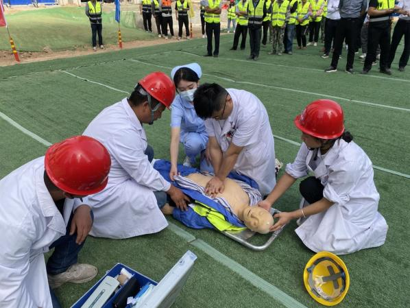 演練現(xiàn)場(chǎng)分別模擬了溝槽坍塌導(dǎo)致的人員壓埋和有限空間作業(yè)中人員氣體中毒情況,在險(xiǎn)情危及人員生命財(cái)產(chǎn)安全的情況下,項(xiàng)目部啟動(dòng)應(yīng)急救援工作。“報(bào)告指揮長,現(xiàn)場(chǎng)K0+400處污水溝槽發(fā)生坍塌,溝槽內(nèi)人員共4人,目前撤離出3人,現(xiàn)有1人部分軀體被埋,傷勢(shì)不明!”。模擬溝槽作業(yè)過程中邊坡突然塌方,導(dǎo)致1名工人被塌方土體埋壓,現(xiàn)場(chǎng)施工員發(fā)現(xiàn)后第一時(shí)間上報(bào)險(xiǎn)情,隨著指揮人員一聲令下,各救援小組迅速抵達(dá)現(xiàn)場(chǎng),按方案分工開展救援:應(yīng)急救援組根據(jù)事故情況快速確定救援方案并組織人員車輛施救;醫(yī)療救護(hù)組在事故發(fā)生的第一時(shí)間內(nèi)判斷傷員傷情并進(jìn)行有效急救;警戒保衛(wèi)組立即設(shè)置禁區(qū),做好現(xiàn)場(chǎng)監(jiān)護(hù)防止二次塌方并引導(dǎo)救援人員及車輛快速進(jìn)出;通訊聯(lián)絡(luò)組迅速聯(lián)系醫(yī)院及當(dāng)?shù)叵啦块T;事故調(diào)查組調(diào)查并分析事故發(fā)生的原因……演練過程中,參演人員反應(yīng)迅速、各司其職,有條不紊推進(jìn)演練高效進(jìn)行,取得了預(yù)期效果。演練模擬施工人員在井下有限空間作業(yè)時(shí),突發(fā)中毒窒息事件。“李工?李工?”協(xié)同作業(yè)人員發(fā)現(xiàn)井下人員沒有回應(yīng),確認(rèn)發(fā)生中毒情況,立刻向現(xiàn)場(chǎng)負(fù)責(zé)人報(bào)告異常情況,負(fù)責(zé)人立刻撥打119、120聯(lián)系消防人員和醫(yī)務(wù)人員進(jìn)行救助,并立即開啟應(yīng)急救援預(yù)案。演練過程中,救援人員完成了對(duì)外聯(lián)絡(luò)、安全警戒、應(yīng)急搶救等流程,做到信息上報(bào)及時(shí)、事故警戒迅速、人員救助合規(guī),圓滿完成了救援任務(wù)。
