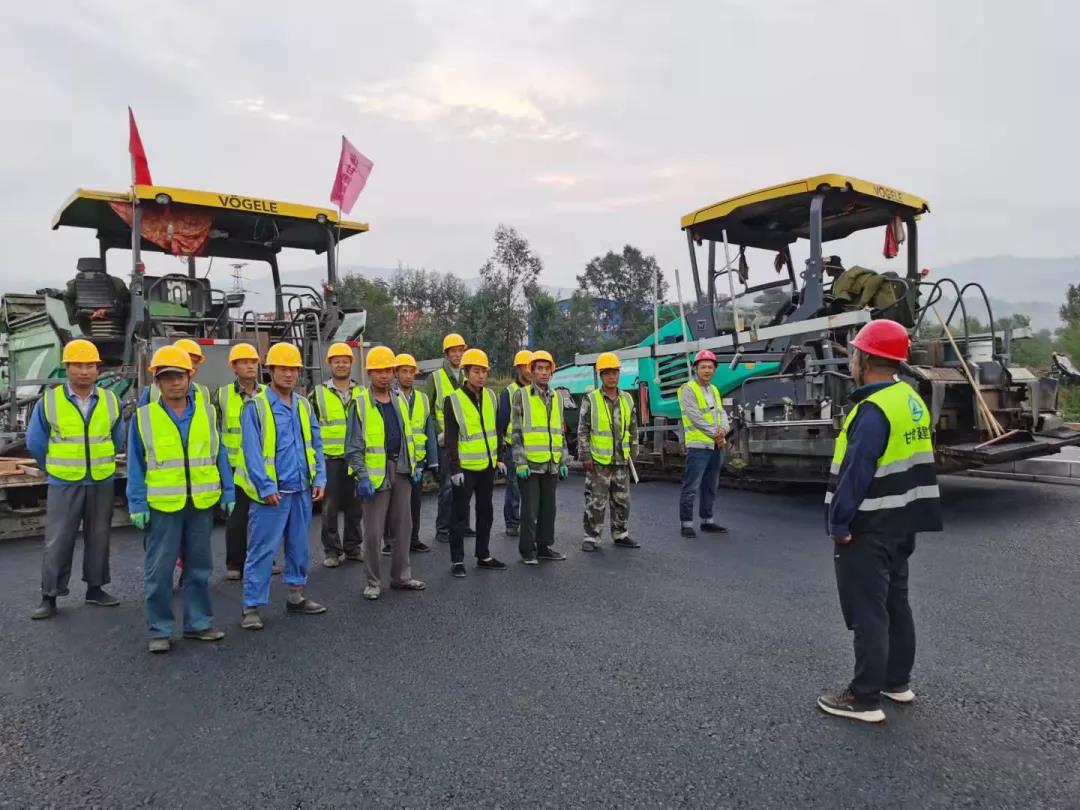 為高質(zhì)量、高標(biāo)準(zhǔn)完成路面下面層8cmAC-25C瀝青攤鋪?zhàn)鳂I(yè),項目部不斷加強(qiáng)施工前期各項準(zhǔn)備工作,細(xì)化責(zé)任、明確分工、嚴(yán)格管控、層層落實(shí),為施工質(zhì)量和進(jìn)度奠定了堅實(shí)基礎(chǔ)。同時,項目部制定了規(guī)范嚴(yán)謹(jǐn)?shù)氖┕び媱潱粩鄡?yōu)化人員與機(jī)械配置、材料配比運(yùn)輸?shù)汝P(guān)鍵環(huán)節(jié),主要通過做好施工隊伍勞務(wù)人員班前安全教育和安全技術(shù)交底工作,明確此次瀝青攤鋪施工的內(nèi)容、范圍和要求,確保每一位參建人員熟悉和掌握施工工藝和機(jī)械操作要點(diǎn),合理有效的控制攤鋪厚度、速度和碾壓溫度,以此達(dá)到精細(xì)化、標(biāo)準(zhǔn)化施工管理要求。