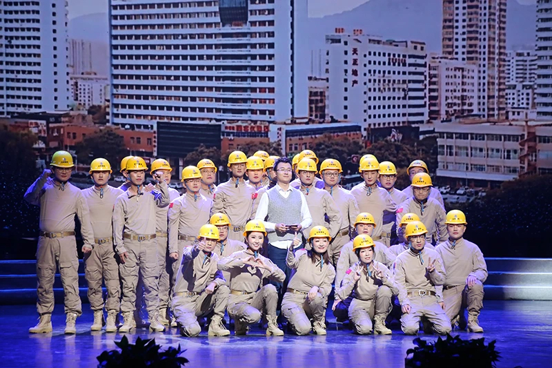 演出前,一遍遍音樂、一次次排練,不斷地?fù)竸?dòng)作、擺位置、變隊(duì)形,16名演職人員仔細(xì)聽從指導(dǎo)老師安排、配合聯(lián)排單位同事,專心投入每一次排練過程中,只為了把最精彩的節(jié)目和狀態(tài)完美呈現(xiàn)在所有觀眾面前,共同為70周年舞臺(tái)上耀眼時(shí)刻做足準(zhǔn)備。“正值項(xiàng)目節(jié)點(diǎn)工作期間,接到公司排練任務(wù),及時(shí)與項(xiàng)目部溝通,協(xié)調(diào)工作時(shí)間,按時(shí)參加了音樂錄制、節(jié)目彩排,加班加點(diǎn)完成標(biāo)書制作,確保工作‘不耽誤’!”和高祥一樣,大家把此次節(jié)目順利演出作為一份責(zé)任、更是一份榮耀,紛紛從繁忙工作中協(xié)調(diào)時(shí)間參加,“白天排練、晚上加班”成為每個(gè)人30余天里的常態(tài)。然而,部分職工也在此過程中悄然成長(zhǎng)。“本來性格就靦腆,也沒有參加過大活動(dòng),看到其他同事在排練時(shí)動(dòng)作協(xié)調(diào)自然,自己心里更沒有底。”崔珍源雖鮮有參加大型活動(dòng)經(jīng)歷,但在排練中他認(rèn)真學(xué)習(xí)動(dòng)作要領(lǐng),迅速掌握訣竅,每天都看著訓(xùn)練視頻找節(jié)拍、盯位置,再也不是老師口中那個(gè)“記不住動(dòng)作拖后腿的同事”,他告訴筆者“在正式演出炙熱的聚光燈下,我再也不認(rèn)為自己還是那個(gè)為了‘湊人數(shù)、完任務(wù)’而參加表演的一份子!”“雖然排練很辛苦,但在音樂戛然而止的時(shí)刻,聽到現(xiàn)場(chǎng)觀眾席熱烈的掌聲,就覺得很欣慰,感覺所有的辛苦和努力都值得!”排練期間,李娜手頭工作并不輕松,令她分身乏術(shù)。時(shí)間緊、任務(wù)重、人手缺,作為代表公司參演的唯一女演職人員,她總是在休息時(shí)間和同伴們互相討論,找到適合自己的方法,打磨動(dòng)作要領(lǐng),展現(xiàn)最優(yōu)姿態(tài),她告訴筆者“自己的辛苦和公司的榮譽(yù)相比,真算不上什么,負(fù)責(zé)的事,要做就做到最好!”