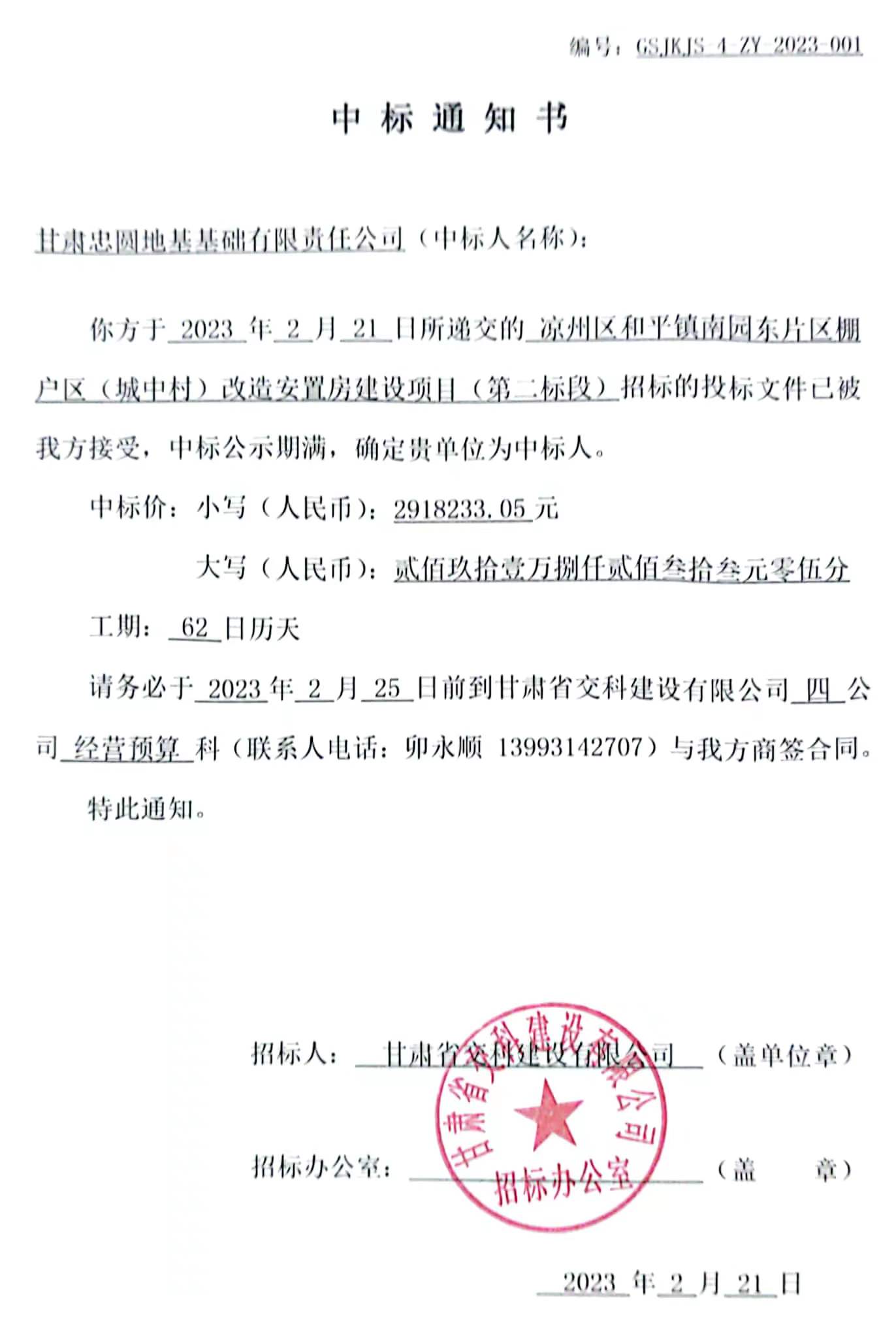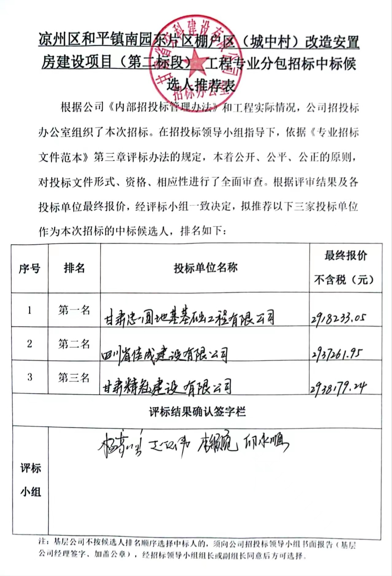 涼州區(qū)和平鎮(zhèn)南園東片區(qū)棚戶區(qū)(城中村)改造安置房建設(shè)項(xiàng)目(第二標(biāo)段)中標(biāo)候選人及中標(biāo)通知書