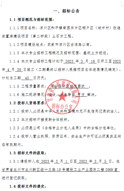涼州區(qū)和平鎮(zhèn)南園東片區(qū)棚戶區(qū)(城中村)改造安置房建設(shè)項(xiàng)目(第二標(biāo)段)土石方工程招標(biāo)公告