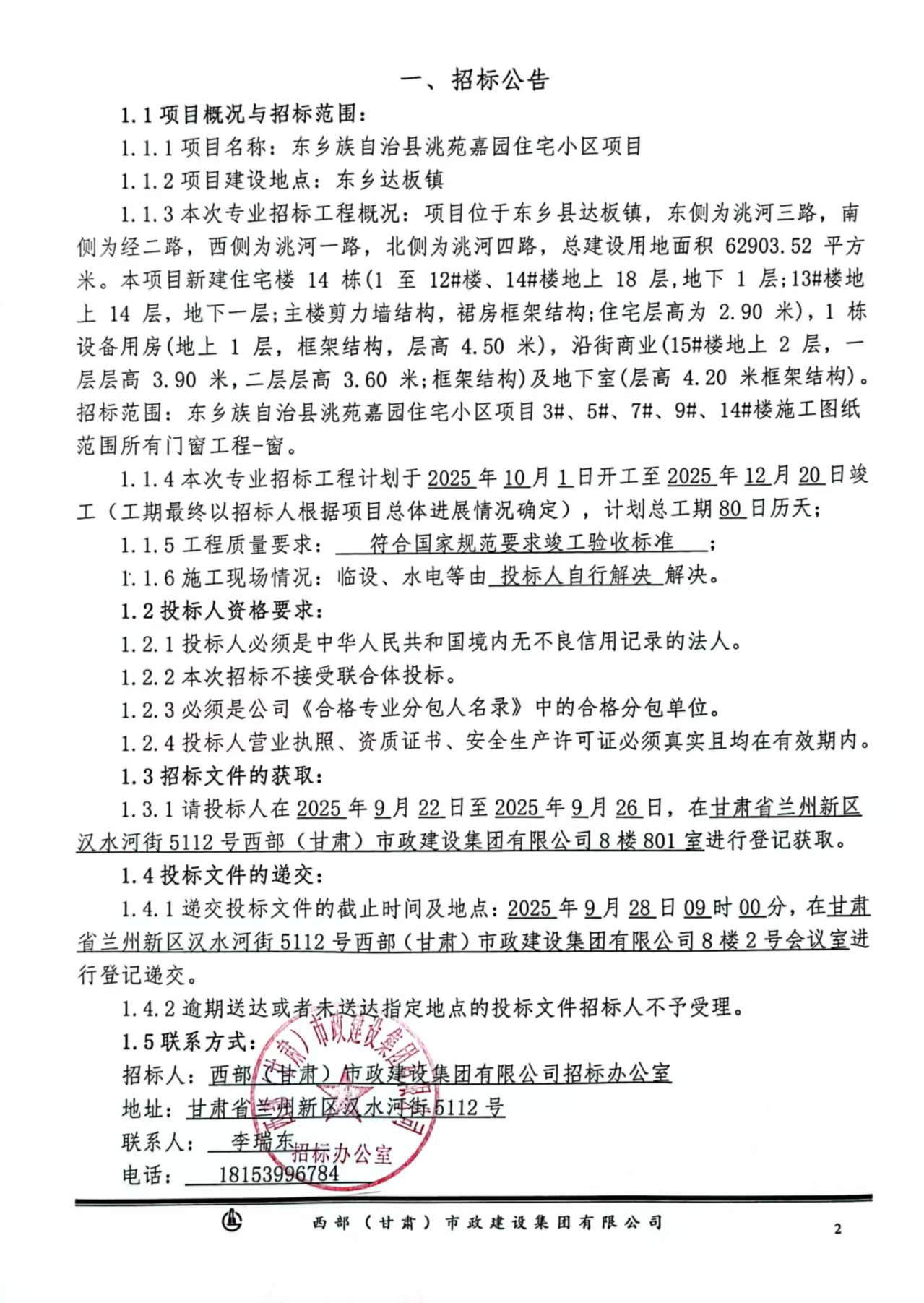 東鄉(xiāng)族自治縣洮苑嘉園住宅小區(qū)項目-窗-招標(biāo)公告