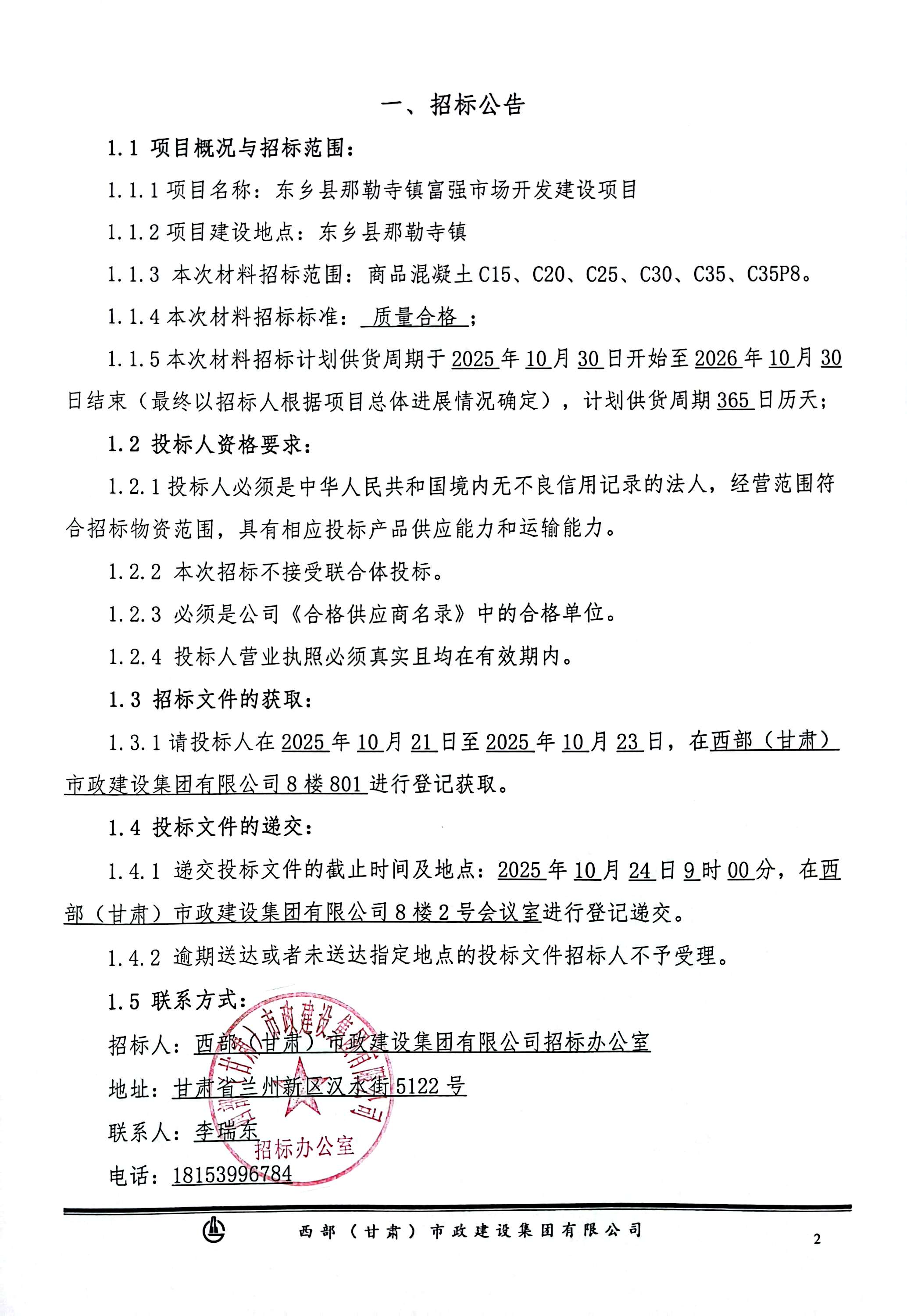東鄉(xiāng)縣那勒寺鎮(zhèn)富強(qiáng)市場(chǎng)開(kāi)發(fā)建設(shè)項(xiàng)目-商品混凝土-招標(biāo)公告